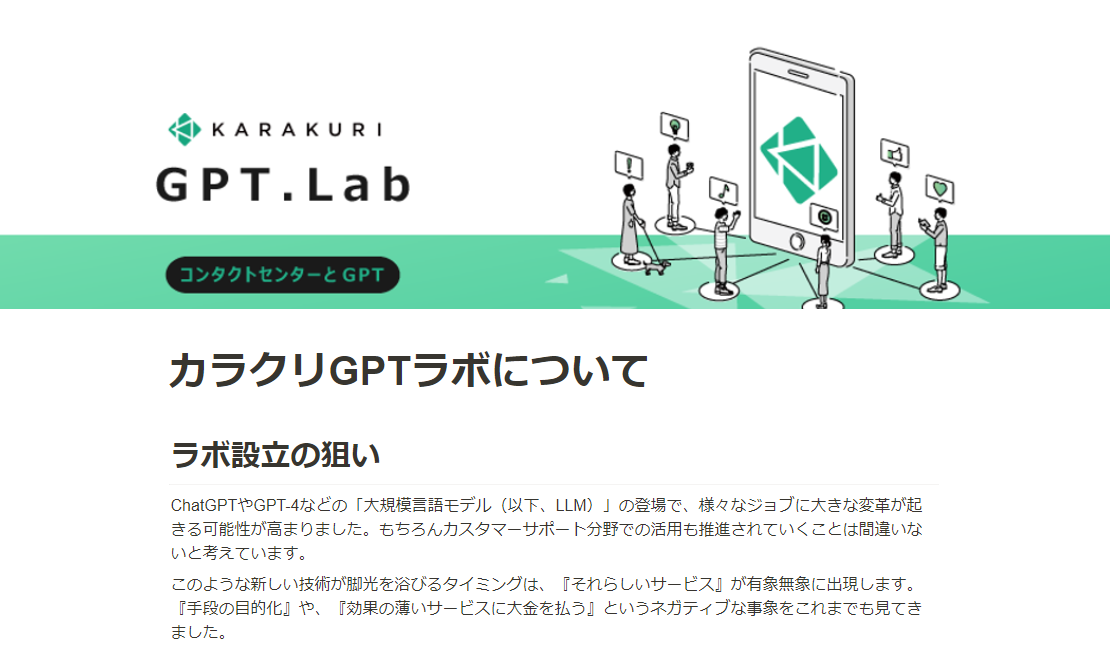 テクノロジーの価値を全ての人が享受できる社会「Friendly Technology」をVisionに掲げるカラクリは、2022年より大規模言語モデルの研究を実施しておりました。本ラボはこれまで蓄積した研究内容の情報公開やLLMを活用した協業企業とのPoC及びその結果発表、海外事例を含めた最新情報の共有などを実施してまいります。誰もが最新の技術を手軽に、簡単に、触れられる機会を1つでも多く創出していくことを目指します。