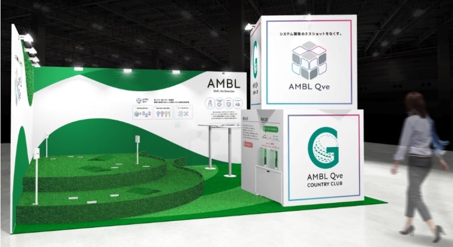 来場者の方に楽しくリフレッシュしていただきながら、Qveの特性を体感していただくために、「システム開発のミスショットをなくす」というコンセプトで、展示会場に実際にプレイできるゴルフのパターコースを設置してお待ちしております。