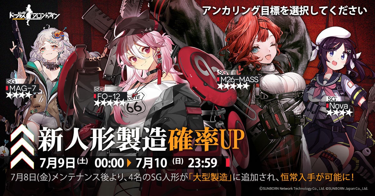 株式会社サンボーンジャパンは、スマホ向け戦略型シミュレーションゲーム『ドールズフロントライン(以下、「ドルフロ」)』において、7月8日(金)より新たな人形4名の追加と、それに伴う確率UPイベントの開催についてお知らせいたします。