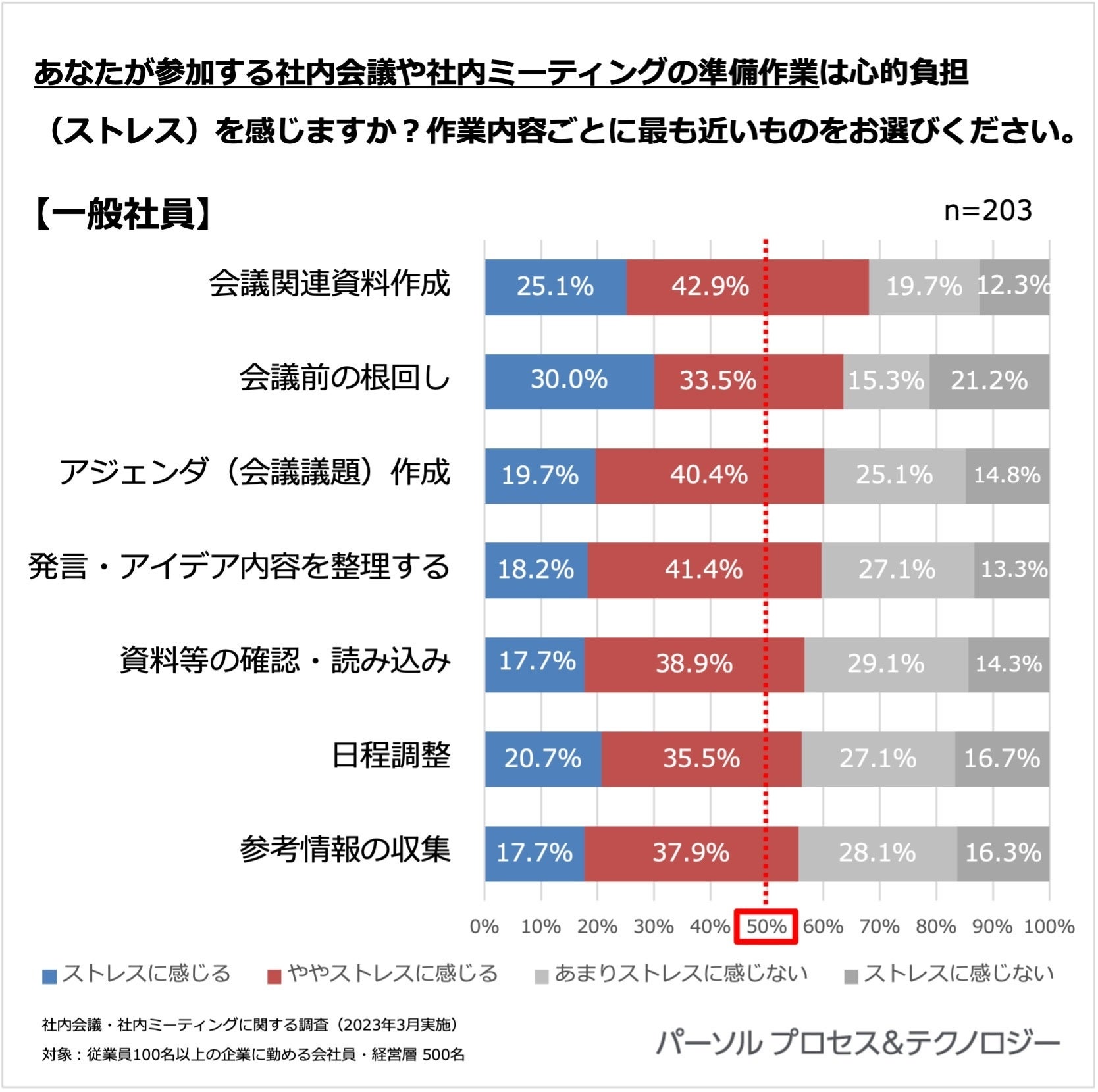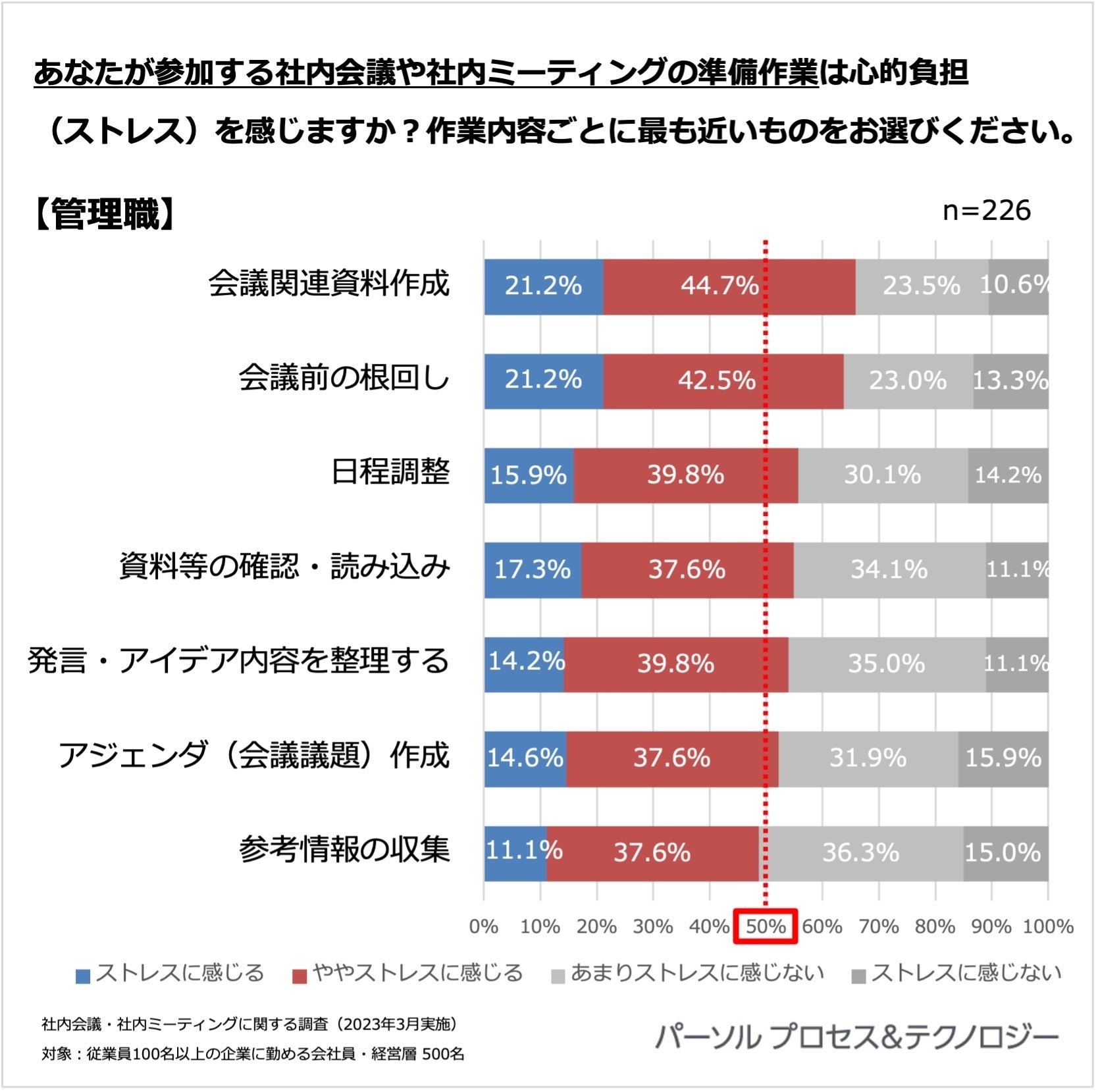 あなたが参加する社内会議や社内ミーティングの準備作業は心的負担(ストレス)を感じますか?