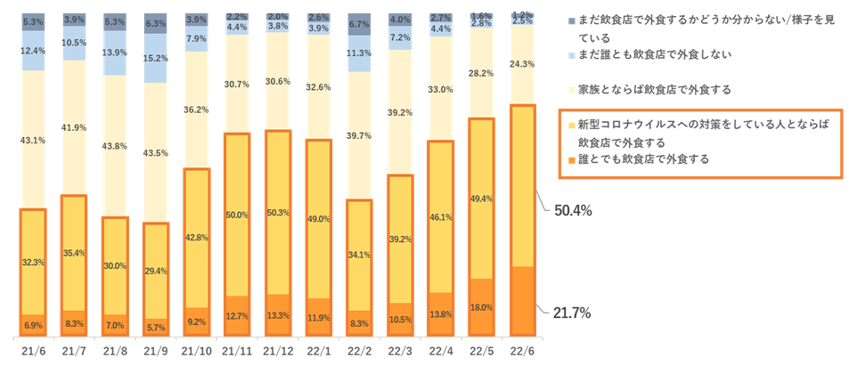 飲食店の利用意向アンケート実施結果:「積極的に外食する」が5カ月連続で増加