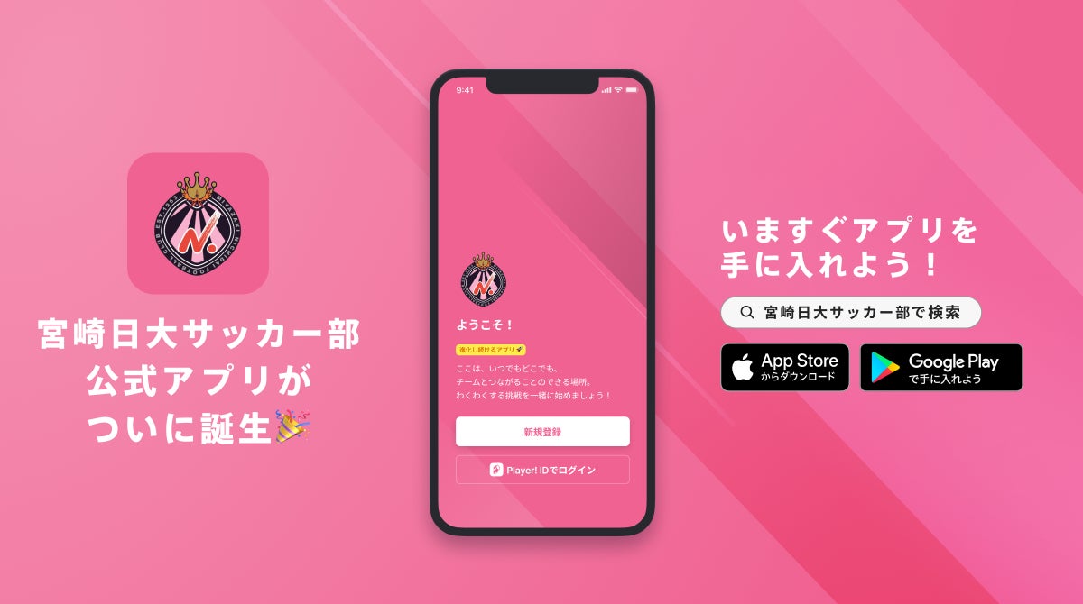 AppStoreもしくはGooglePlayで「宮崎日大サッカー部」と検索していただくか、下記をクリックすることでアプリ取得画面にリンクします。どうぞお楽しみ下さい。
