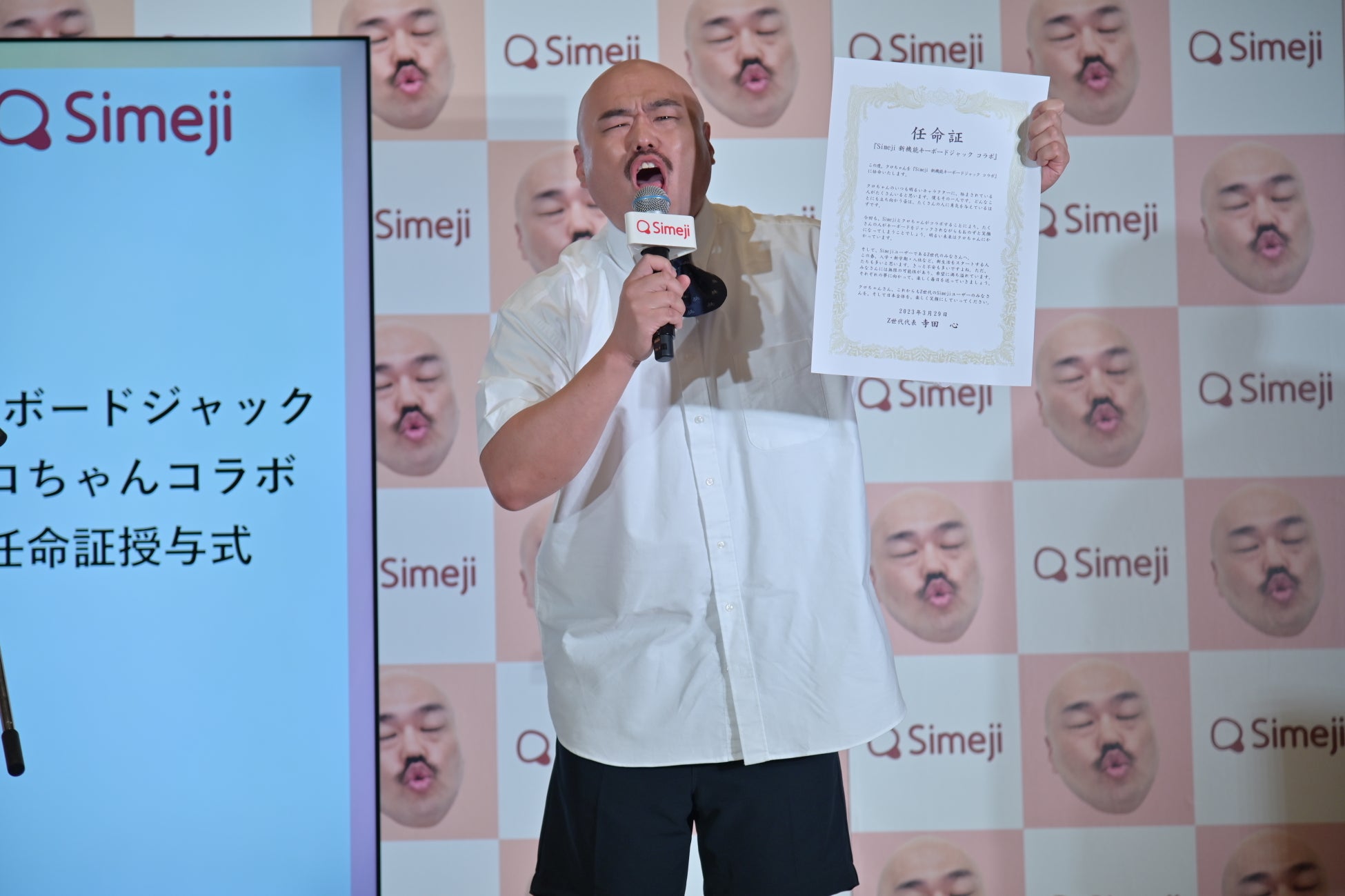 そして最後に、今回Simejiキーボードジャック機能がクロちゃんとコラボすることに関して、Z世代を代表して寺田からクロちゃんへ任命証授与式が行われました。クロちゃんは、「こういう姿を彼女のリチに見てもらいたいですね!」とコメントしました。