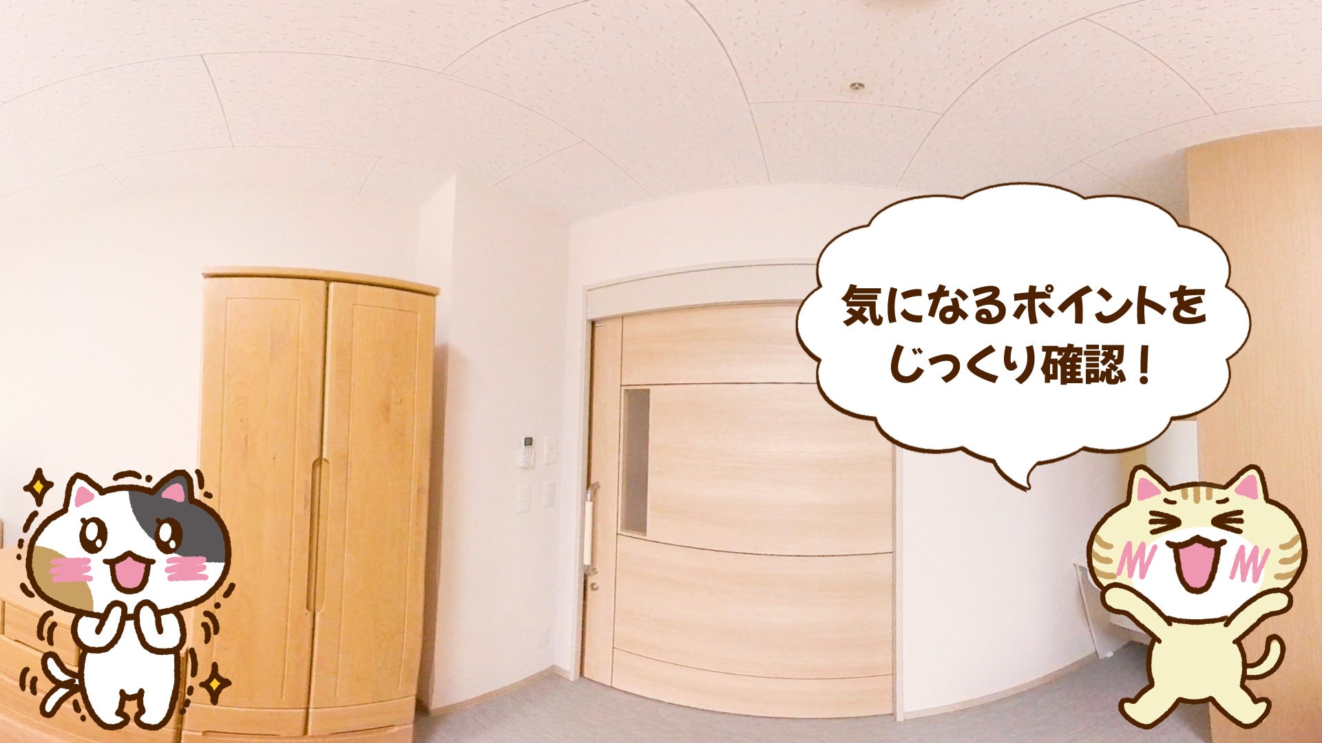 「みんなの介護」の「VR施設見学動画」は全編4K画質で撮影しています。施設内の個室・機能訓練室(リハビリ室)・食堂(ダイニング)を始めとする様々な空間を360度自由に回転させて確認できるのが最大の特長です。任意の角度から、お部屋の隅の細かい部分までチェックすることができます。