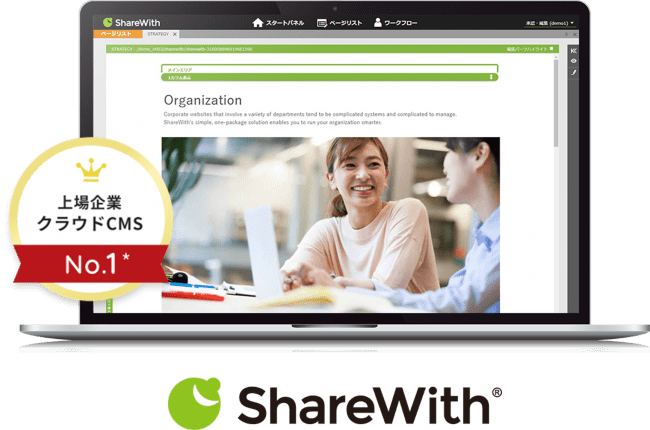 ShareWith®は、上場企業のWebサイトに必要なCMS・サーバー&セキュリティ・サポートをワンパッケージで提供し、持続的なサイト運営を実現する、定額制のクラウドCMSです。広報・IR・採用・ESG・製品・マーケティングなど、様々な部門によって運営されるWebサイトは、いまだ外部に依存した不自由な体制や、カスタマイズによる属人化・複雑化、セキュリティリスクに問題を抱えています。ShareWith®はこれらの問題に対し企業個別に対処するのではなく、優れたWebサイト運営の共有基盤そのものを提供し、企業のWebサイトの持続的運営体制を支援します。