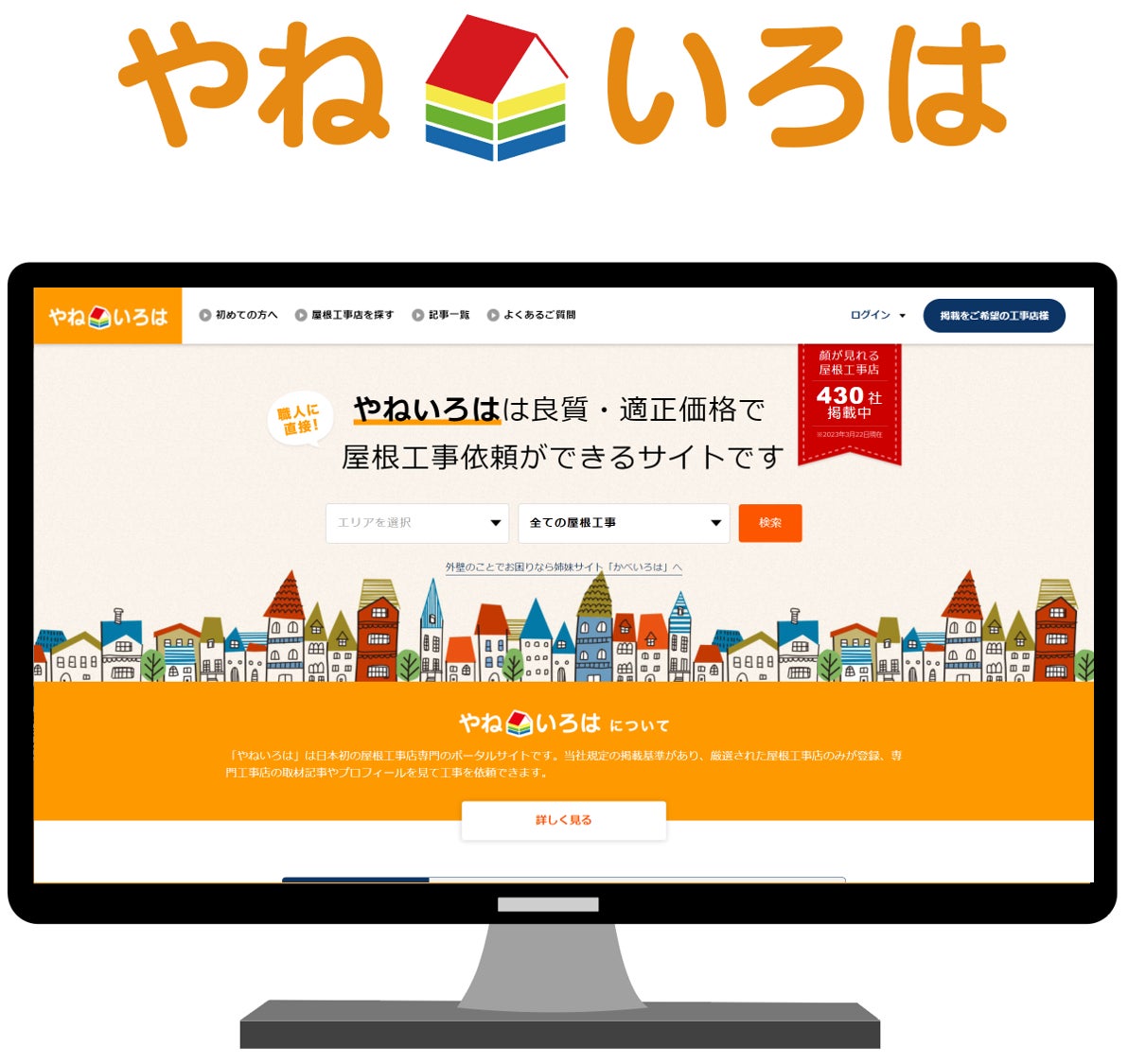 特に先発サービスである「やねいろは」は“良質な屋根工事店とエンドユーザーを繋げたい”というコンセプトの下、日々ユーザーと登録工事店が増加。2023年3月27日現在、430を超えています。