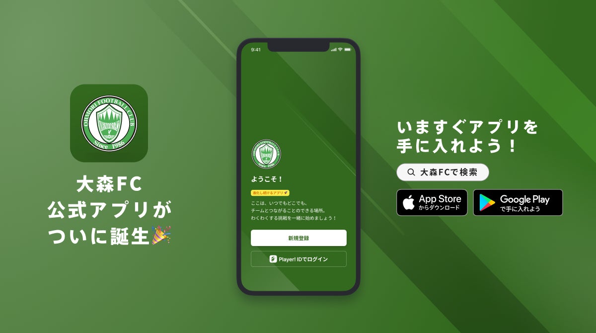 AppStoreもしくはGooglePlayで「大森FC」と検索!