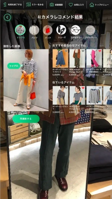 ②AIカメラでお客様のコーディネートアイテムを識別し、おすすめの商品を提案