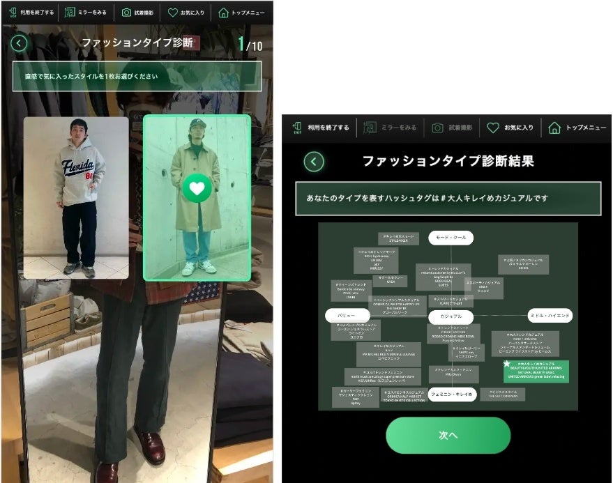 「本当の”似合う”が見つかる!」をコンセプトに、AIカメラによるアイテムレコメンドやフェイス・パーソナルカラー診断、 ファッションタイプ診断などさまざまな機能を搭載。診断結果からアイテムを選ぶことで新たな視点でのお買い物を提案いたします。