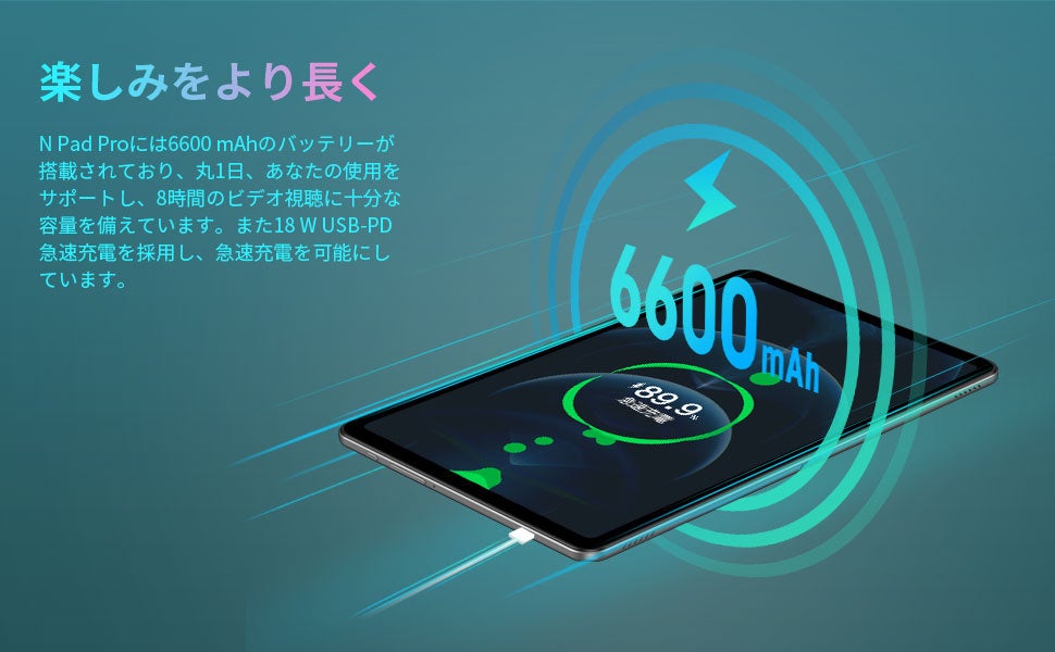 【6600mAh大容量+5/13MPカメラ+ 軽量10インチタブレットPC+GMS】 6600mAhの大容量のバッテリーを搭載し通勤途中や出張時でも映画や、電子書籍やドラマ、音楽鑑賞などを長時間安心してご利用いただけます。 1300万画素のリアカメラと500万画素のフロントカメラで、美しい風景や会話の動画を撮影することも可能です。 10.4インチタブレットPCはGoogleのGMS認証済み、Google Play ストアから全てのLINE / Netflix / YouTube /Facebook / Twitterなどお気に入りのアプリにアクセスできます。 NPad Pro は7.5mm の薄さ、ポータブルなオールメタルデザイン。 重さ440gなので、仕事・勉強・外出先など、持ち歩きにも便利です。より軽く、家中またはどこへでも持ち歩けるモバイルなタブレットです。デュアルMICマイク内蔵、とワイヤレス投影に対応、PSE & TELEC 認証取得