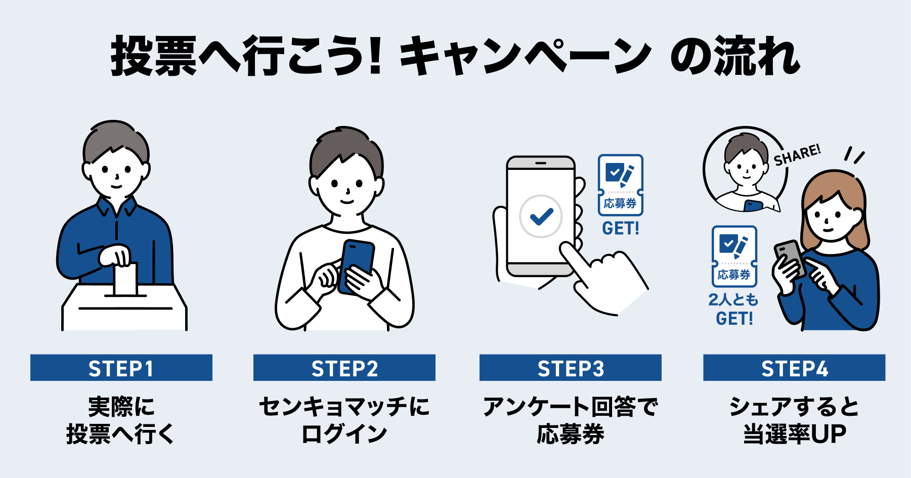 ※お友だちがすでにセンキョマッチユーザーの場合、応募券は増えません。