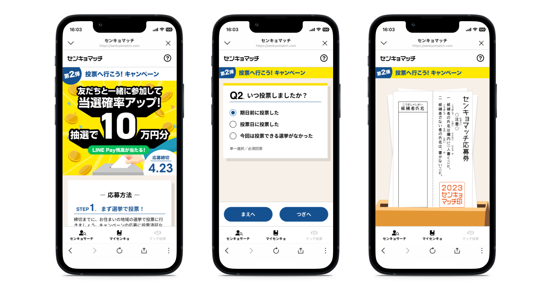 キャンペーンページ:https://www.senkyomatch.com