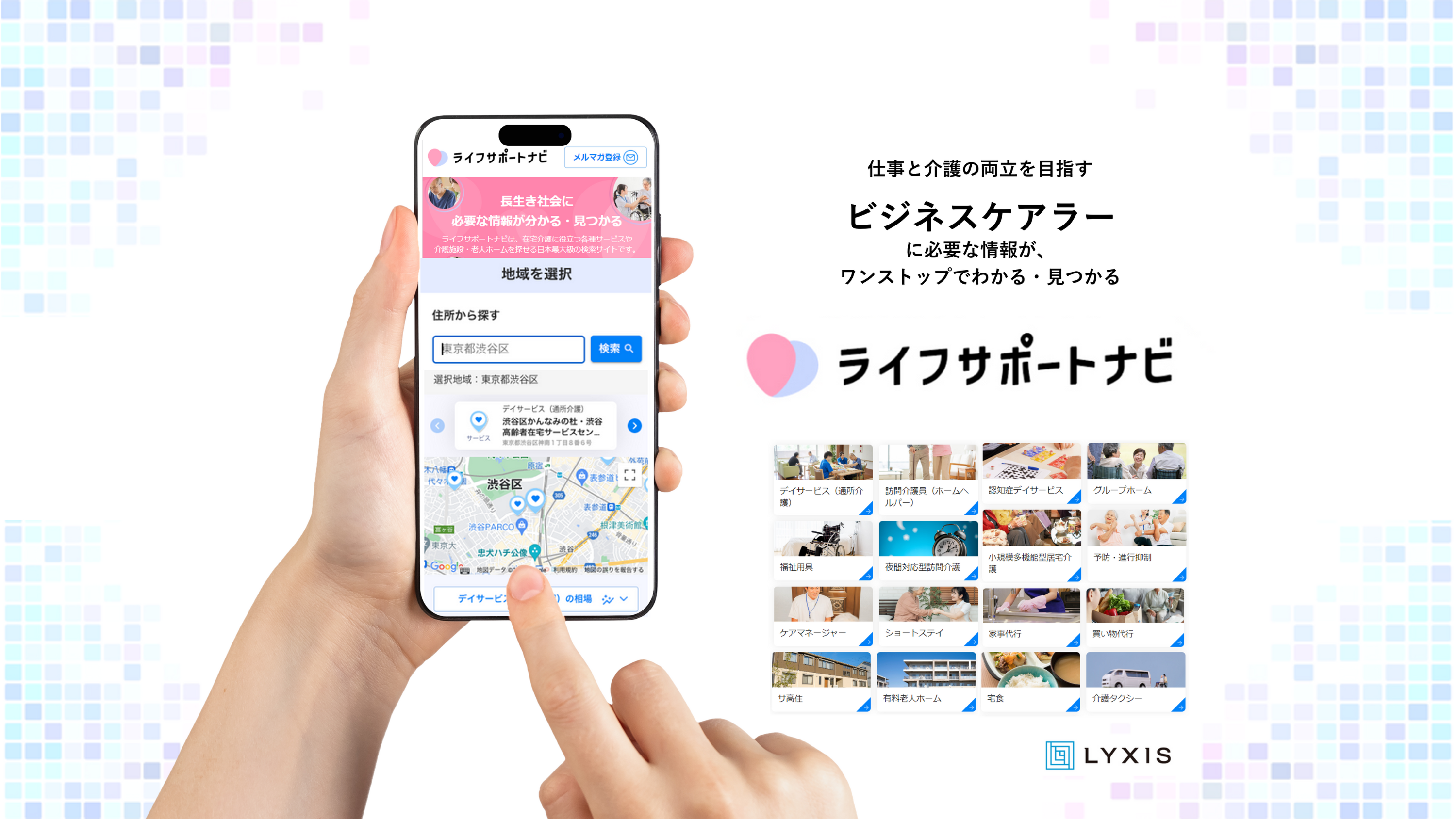 | 【株式会社リクシスについて】 「『情報』と『つながり』で幸せな長生きを実現する」をミッションに掲げ、仕事と介護の両立支援クラウド「LCAT」、高齢者・シニア市場向けリサーチ&コンサルティング事業、高齢者・シニア市場向けプロモーション&マーケティング事業を提供しています。 詳細は https://www.lyxis.com/ をご覧ください。 ・株式会社リクシス公式Facebookページ ・本件に関するお問い合わせ先:media@lyxis.com(リクシス ビジネスケアラーメディア事業部) |