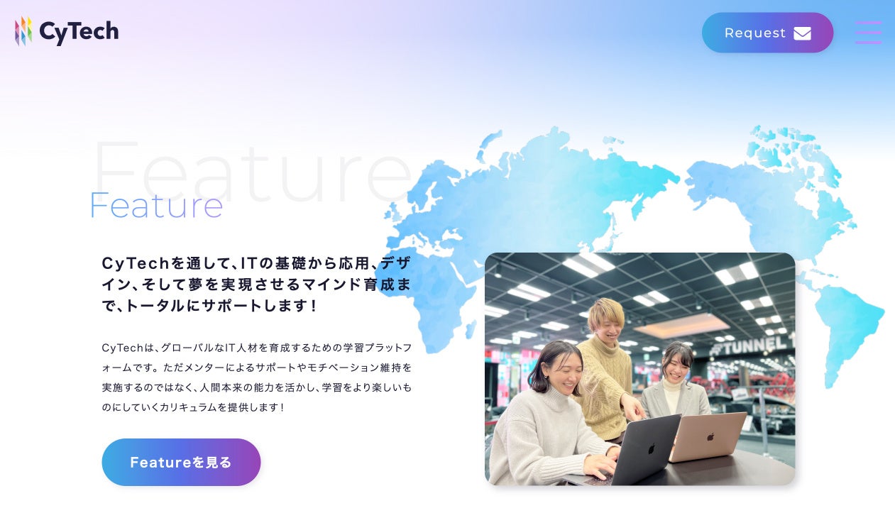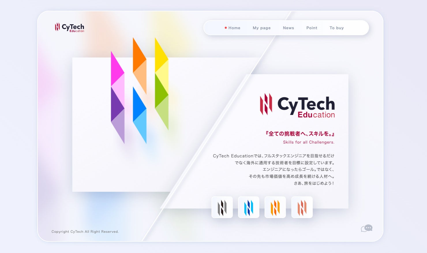 当社は「エンジニアはプログラミングだけ出来れば良い」わけではないと考えています。寧ろ現代において、そういった思考や技術者はIT業界でも淘汰されつつあります。そこで業界における総合的なスキルの底上げを率先して行い、且つグローバル化が普遍的である社会を目指し「CyTech」を開発するに至りました。