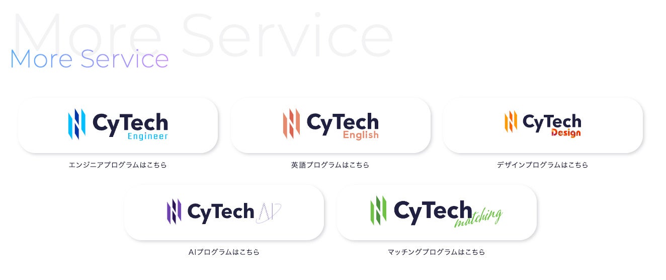 サービス内でのカリキュラムの追加とデザインを一新したタイミングで、CyTechの「サービスサイト」を制作致しました。TNGがミッションとして掲げる「世界の常識をデザインする。」を達成させるために開発されたCyTech。IT業界のグローバル化を夢物語ではなく「実現させる過程」を構築させるため試行錯誤し、ようやく提供まで結ぶことができました。そして今回、CyTechという画期的なサービスを広く認知していただくためにサービスサイトを公開致しました。