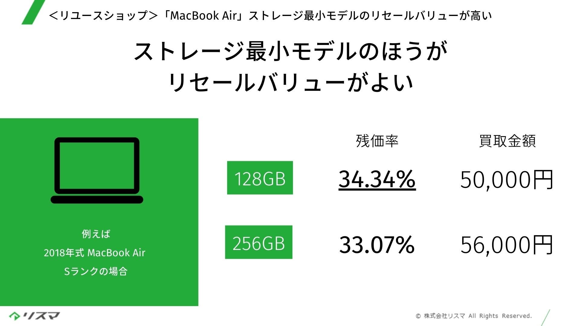 • 「MacBook Air」ストレージ最小モデルのリセールバリューが高い