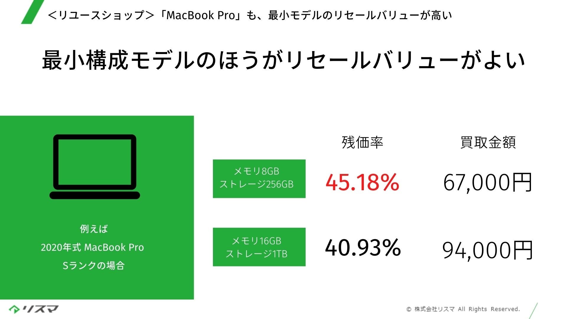 • 「MacBook Air・Pro」ストレージ最小モデルのリセールバリュー(※1)が高い