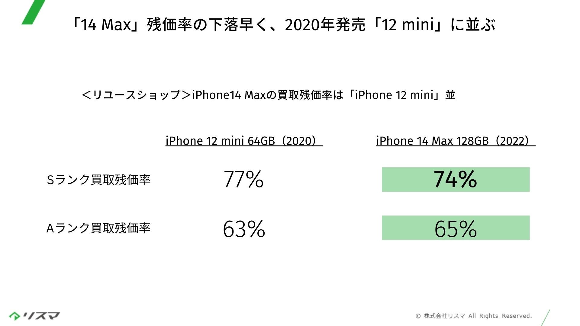 • iPhone14 Maxの買取残価率は「iPhone 12 mini」並