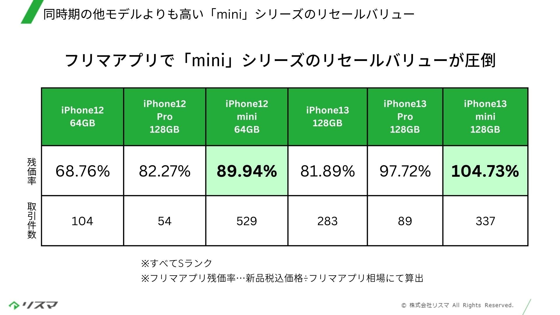 • 「mini」シリーズのリセールバリューが「Pro」シリーズ超え