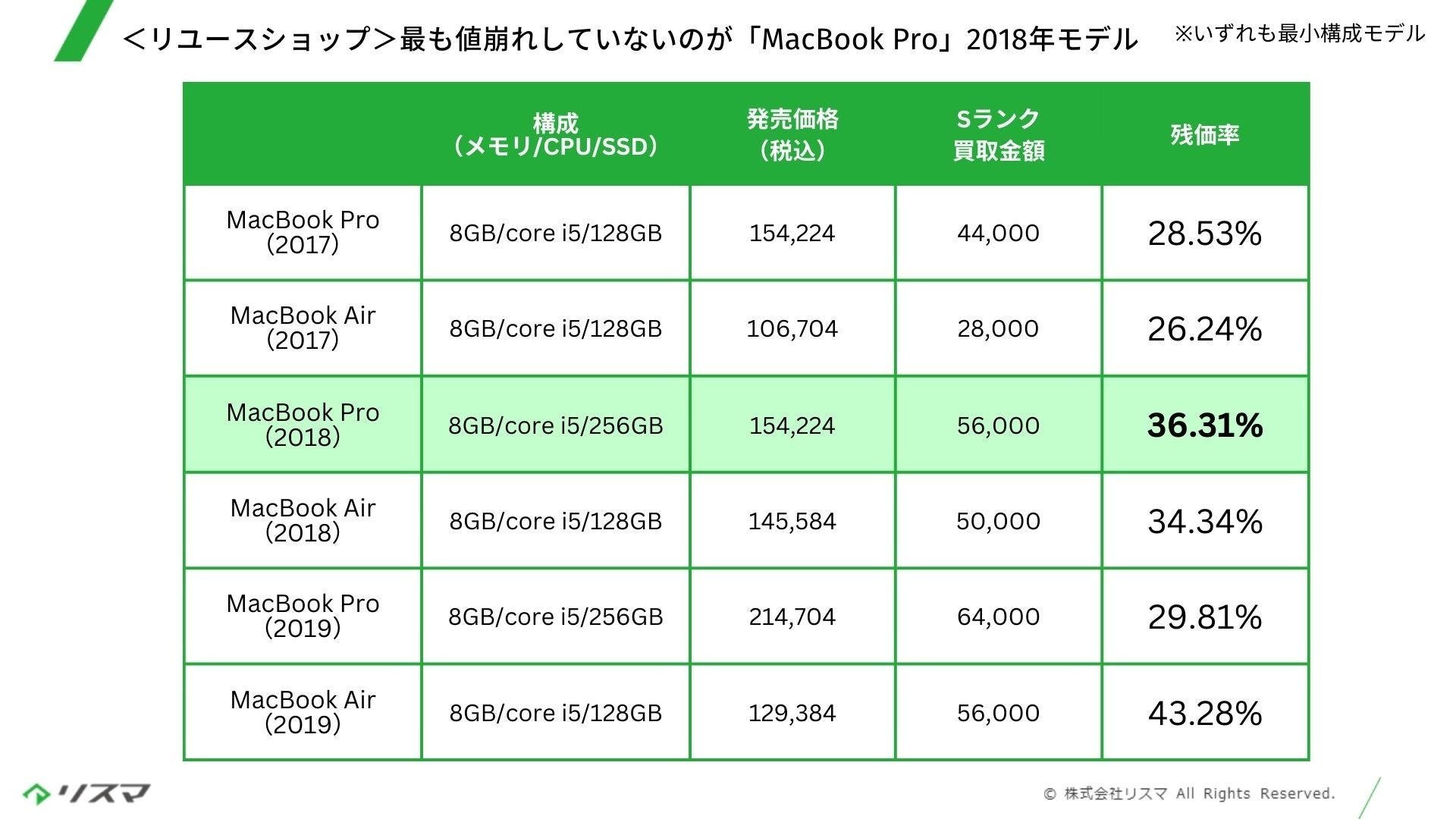 「MacBook Air・Pro」ストレージ最小モデルのリセールバリュー(※1)が高い