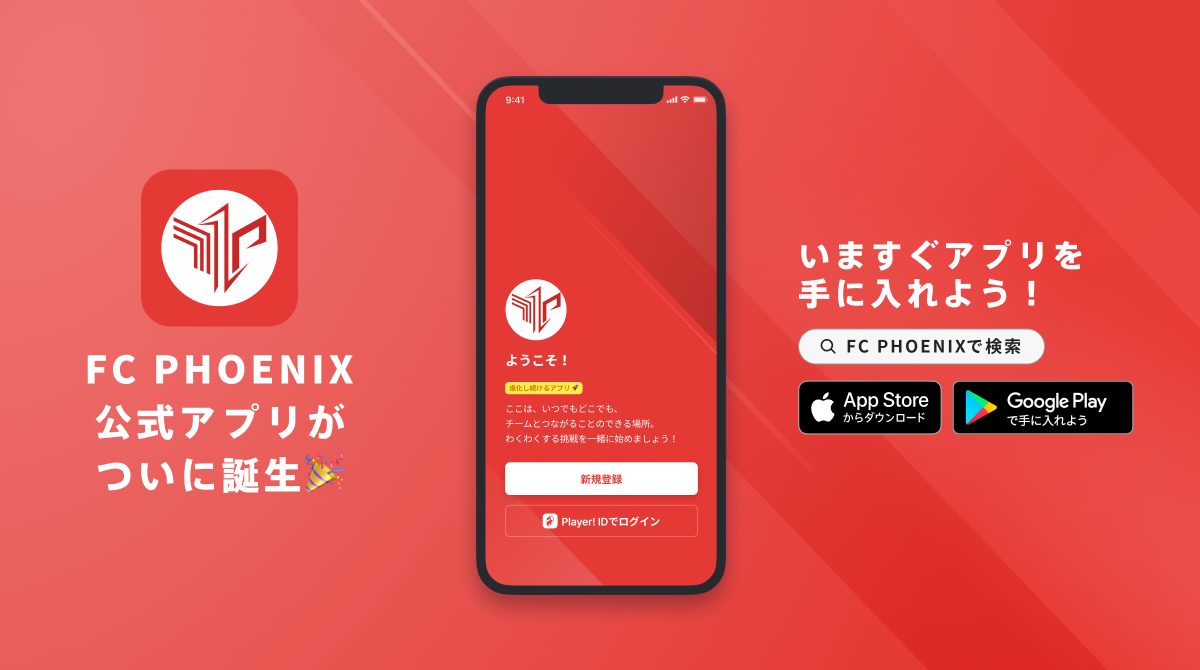 AppStoreもしくはGooglePlayで「FC PHOENIX」と検索!