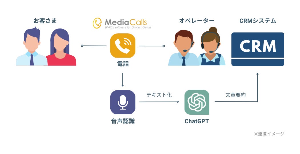 「MediaCalls」と「ChatGPT」を連携し、コールセンターでの顧客応対後の後処理時間を大幅削減する “通話内容の要約” および “要約したテキストの自動記録” を実現する新機能開発を行うことを発表いたします。