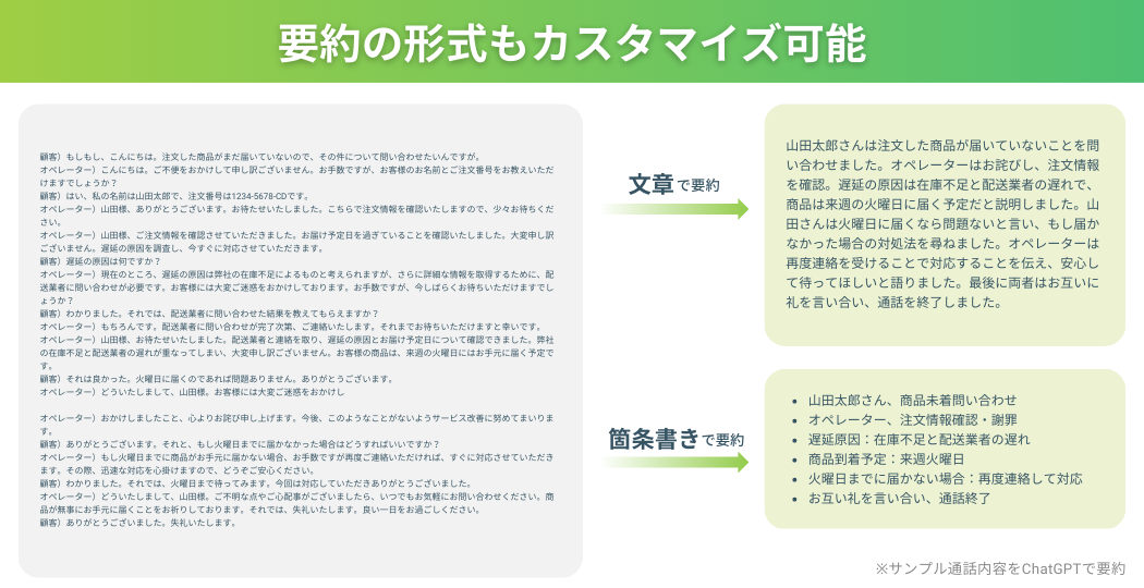 従来、オペレーターが顧客応対後に通話内容を自分自身で整理し、CRMシステムなどへ手入力する必要がありましたが、この機能によって顧客応対後にAIがテキスト化・要約・記録をすべて自動で行うため、オペレーターはこれまで以上に顧客応対に集中することが可能となります。また、記録品質の平準化や内容統一も容易となります。この機能開発により、昨今ますます深刻化するコールセンター人手不足の解消や、オペレーターの業務負荷軽減などを実現いたします。