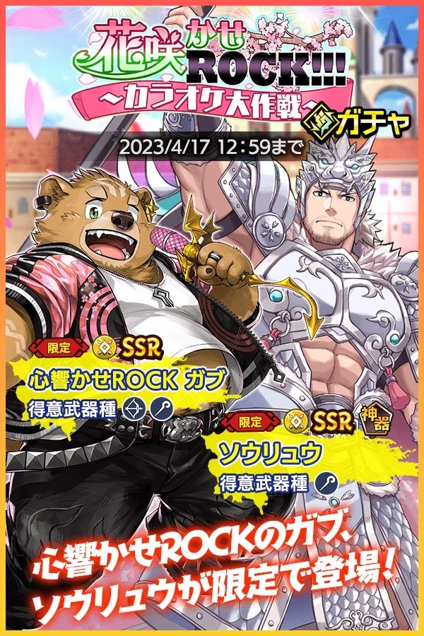 さらに、SSR魂友「心響かせROCK ガブ」とSSR神器「ソウリュウ」が入手可能な期間限定の「花咲かせROCK!!! ~カラオケ大作戦~」ガチャも登場!