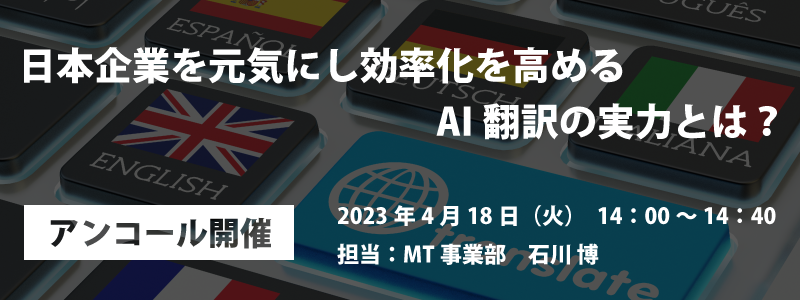 そこで今回はビジネス・サイクルの革新に効くAI翻訳を「概要編」として皆さまにウェビナー形式でお伝えしたいと考えております。