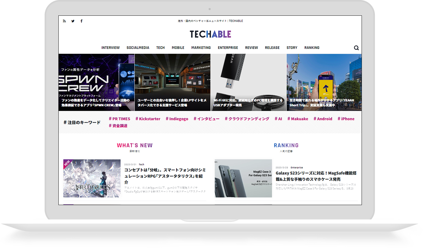・国内外のテクノロジーニュースを伝えるニュースサイト「TECHABLE(テッカブル)」