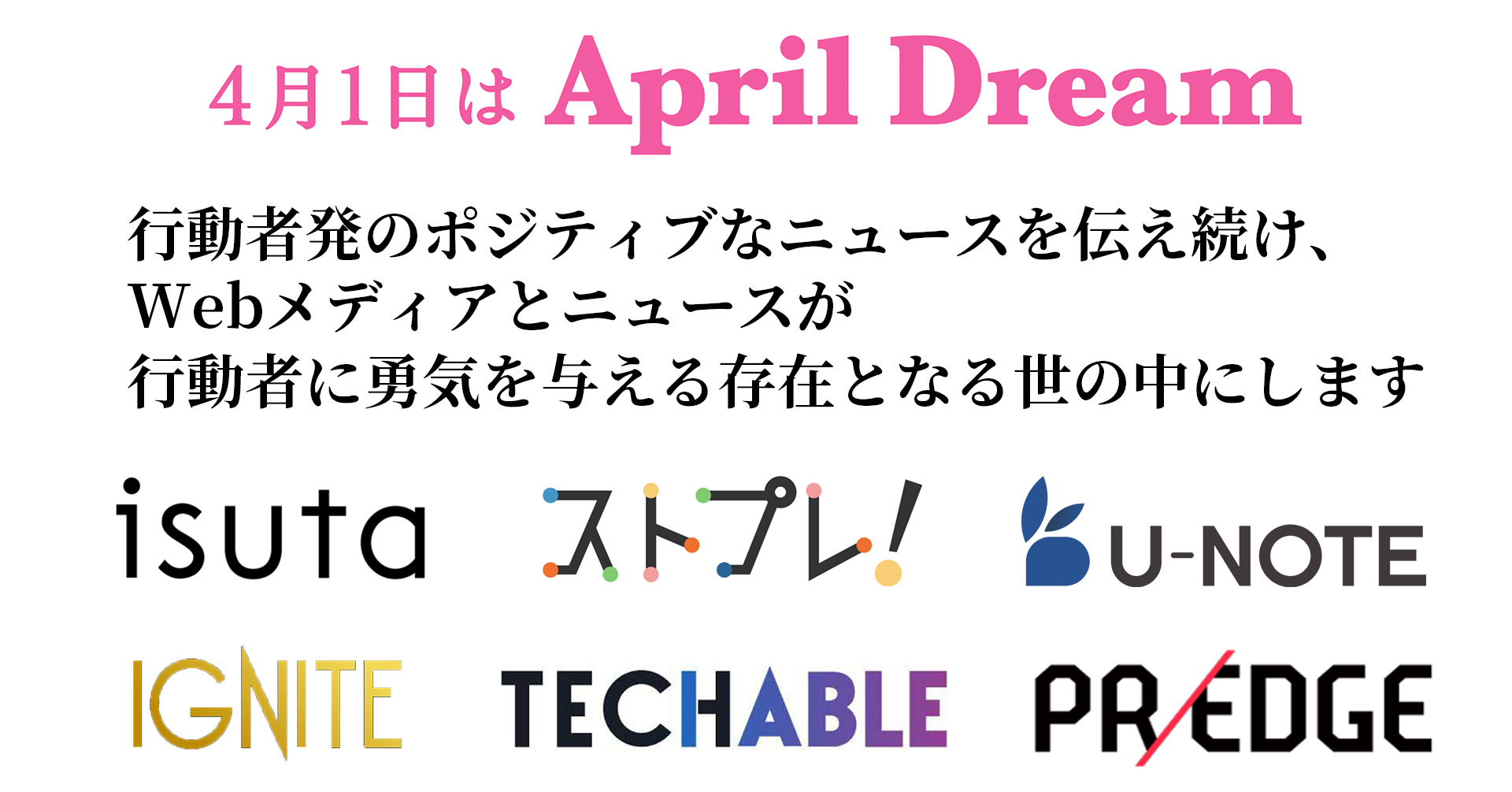 「April Dream」は、4月1日に企業がやがて叶えたい夢を発信する、PR TIMESによるプロジェクトです。私たちはこの夢の実現を本気で目指しています。