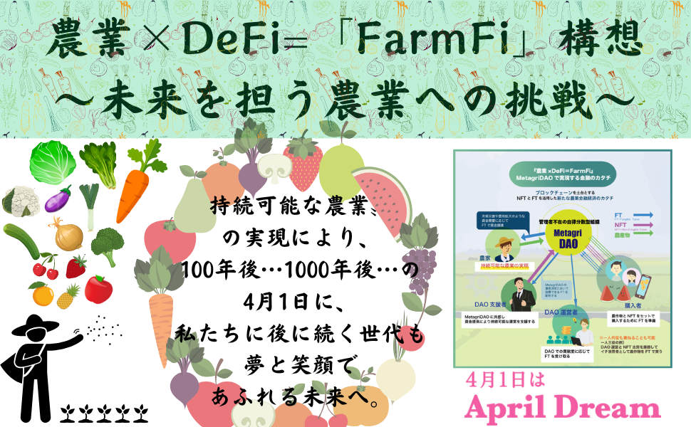 FarmFi構想では、農業と分散型金融(DeFi)を組み合わせ、革新的な農業ビジネスの創出を目指します。