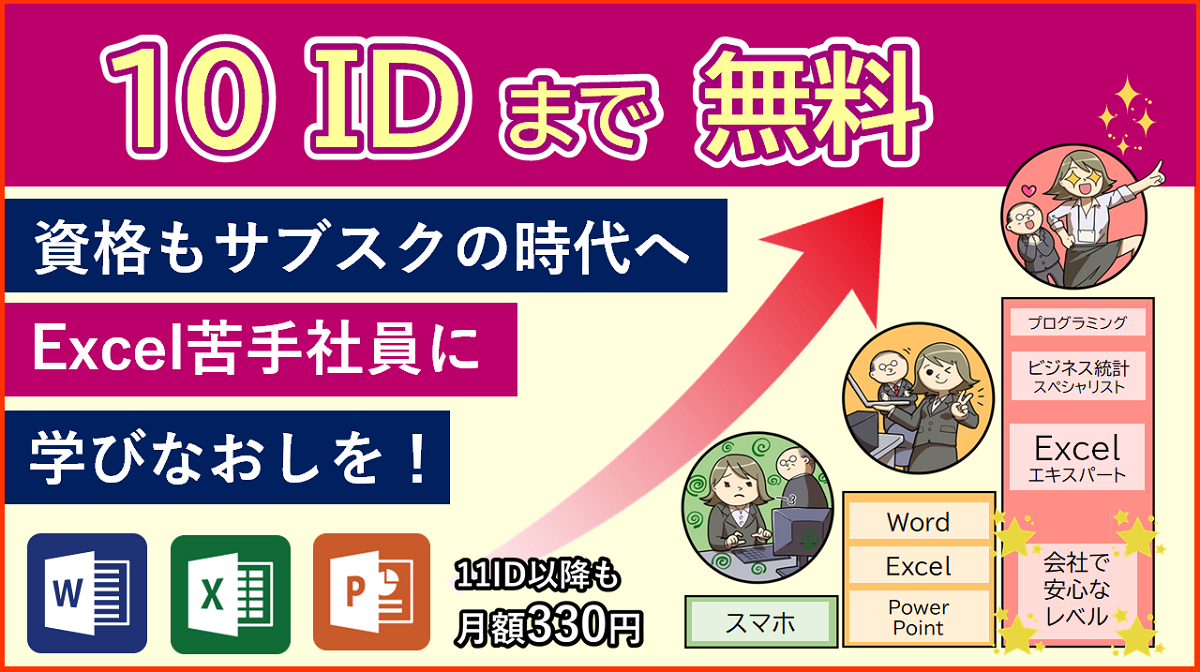 株式会社Rabbitは、以下のICT教育対象講座(全340動画)を1企業様につき、10IDまで無償提供という形で夢を現実にいたします。日本の75%である171万社が10人未満の企業様でございます。皆さまExcel教育の普及のご支援・ご協力をお願い申し上げます。