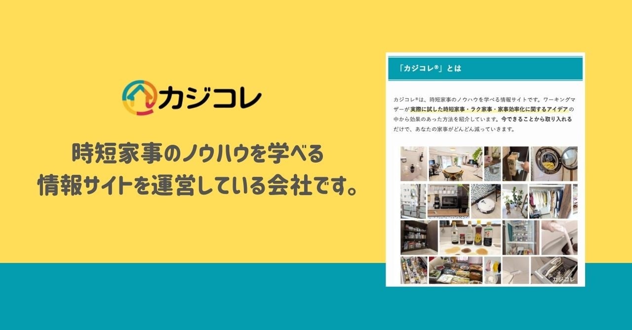 カシオペイア株式会社では、日本中の家事負担の削減を目指して時短家事のノウハウを学べる情報サイト「カジコレ」を運営しています。