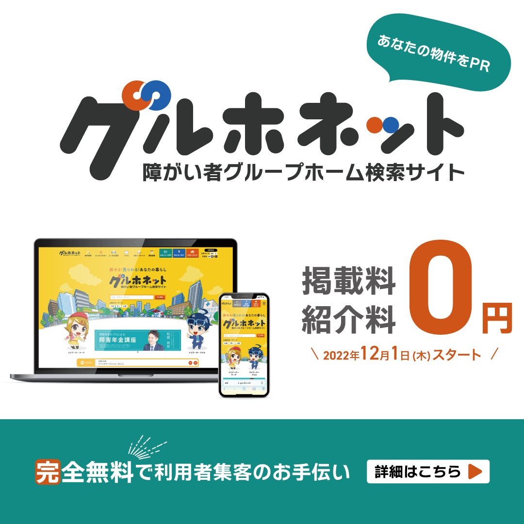 利用者様がグルホネットを通して利用に至ったとしても紹介料は頂いていません。より多くの事業者様に物件を登録していただくことで、障害当事者の方々が自己実現に繋がる選択ができるような環境づくりの一助になれると思っております。