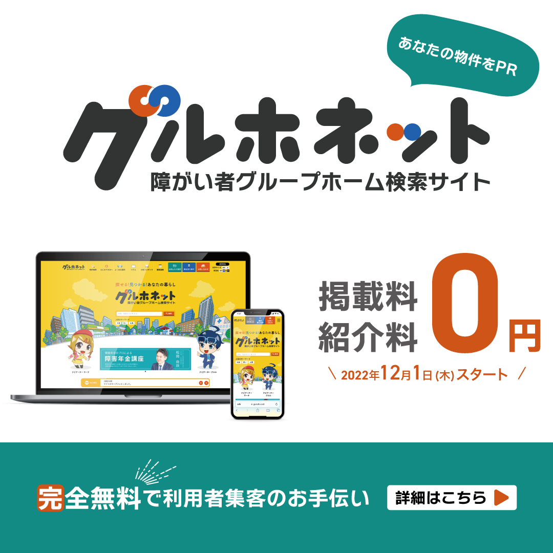 利用者様がグルホネットを通して利用に至ったとしても紹介料は頂いていません。より多くの事業者様に物件を登録していただくことで、障害当事者の方々が自己実現に繋がる選択ができるような環境づくりの一助になれると思っております。