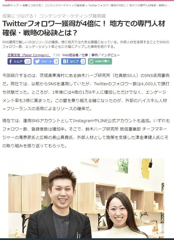 例:企業Web担当者・マーケティング担当者のためのメディアサイト「Web担当者Forum」に2022年4月13日、鈴木ハーブ研究所様のミエルカコネクト活用事例が掲載されました。