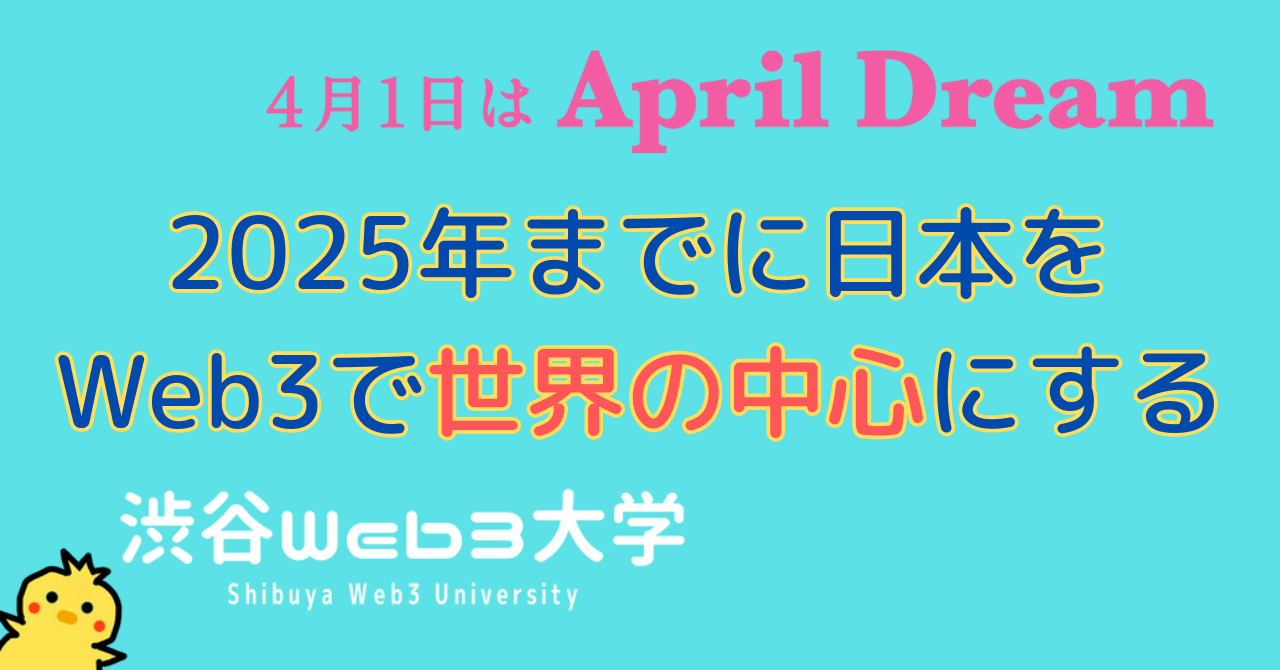 こんにちは。シマウマ合同会社CEO、渋谷Web3大学を運営するhajimexです。渋谷Web3大学で「2025年までにWeb3で日本を世界の中心にする」。これが実現できなければ、この美しい地球と人類の未来にとって、非常に大きな損失です。これは、必ず実現させなければならない、私たちの夢です。そのために、私たちは、渋谷Web3大学をハブとする事で、あらゆる手段を使って、その実現に向かわせます。Web3でこれまでの常識は大きく変わります。変わりゆく世界に向けて、様々な障壁が立ちはだかりつづけることでしょう。ありとあらゆる手段が必要です。シマウマ合同会社のApril Dreamを実現は、hajimex、学長激辛ちゃん、渋谷Web3大学に入ってくる皆様、そして、Visionを同じくする支援者の皆様に委ねられています。力を合わせましょう!!