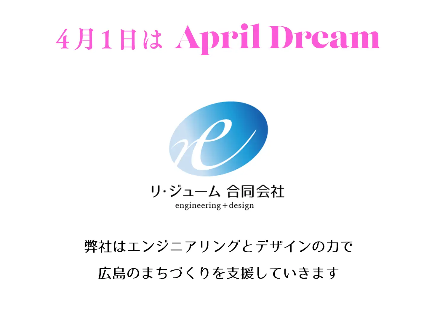 当社は、4月1日を夢を発信する日にしようとするApril Dreamに賛同しています。このプレスリリースは「リ・ジューム合同会社」の夢です。