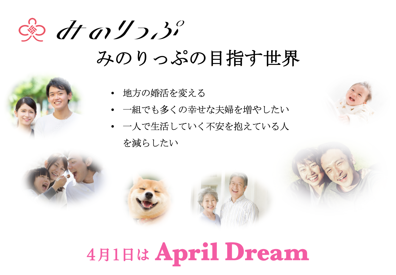 現在少子化対策がさまざま検討されていますが、まずは日本の婚姻率を上げるために「みのりっぷ」というサービスを立ち上げ、一人でも多くの結婚を望んでいる人が結婚できる世の中にしていきます。