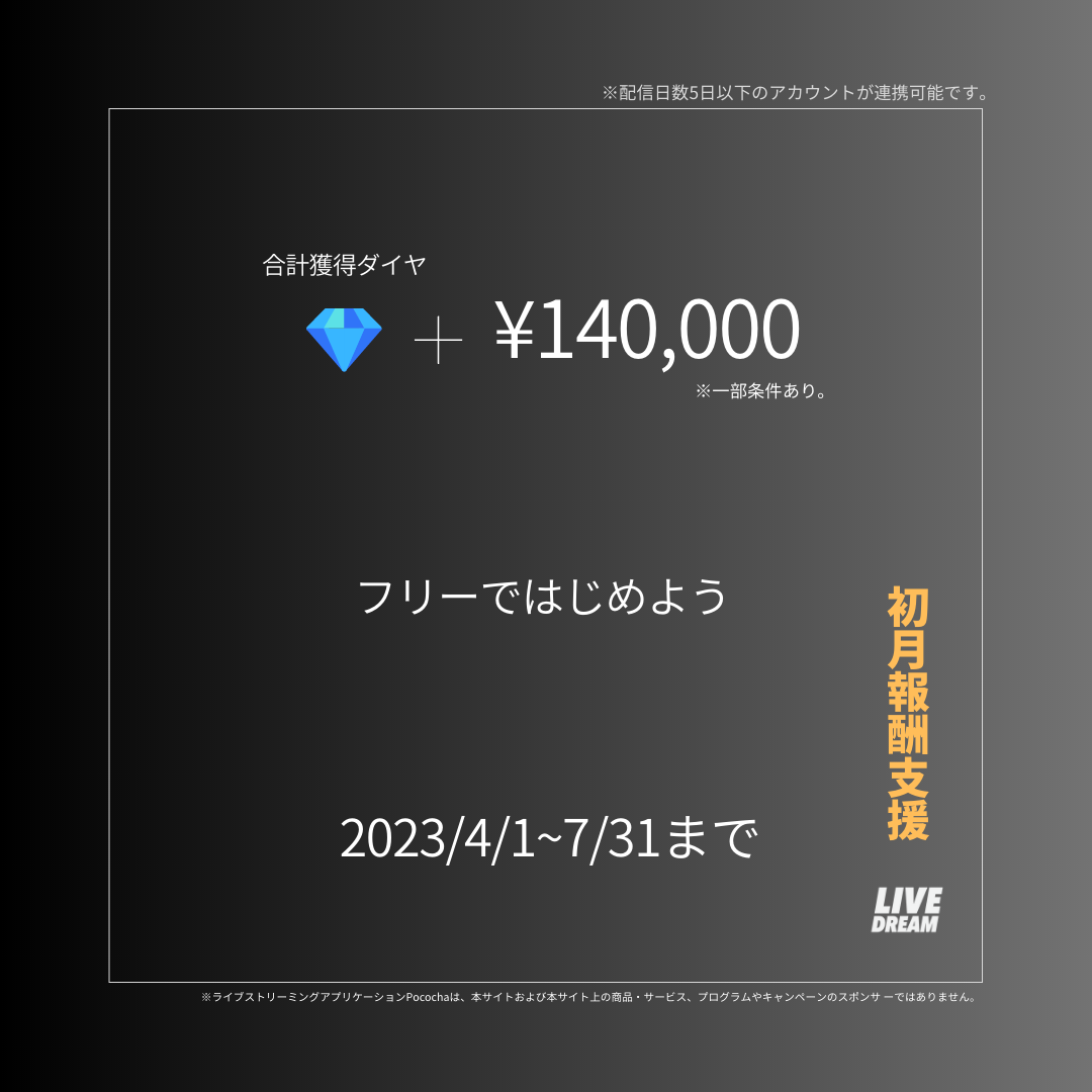 ライブドリームは、2023年4月から7月までの期間限定で初月支援報酬として、ダイヤにプラスして14万円の報酬支援を提供することを発表しました。この支援は、同社が積極的に『専業ライバー』を募集していることを示しています。