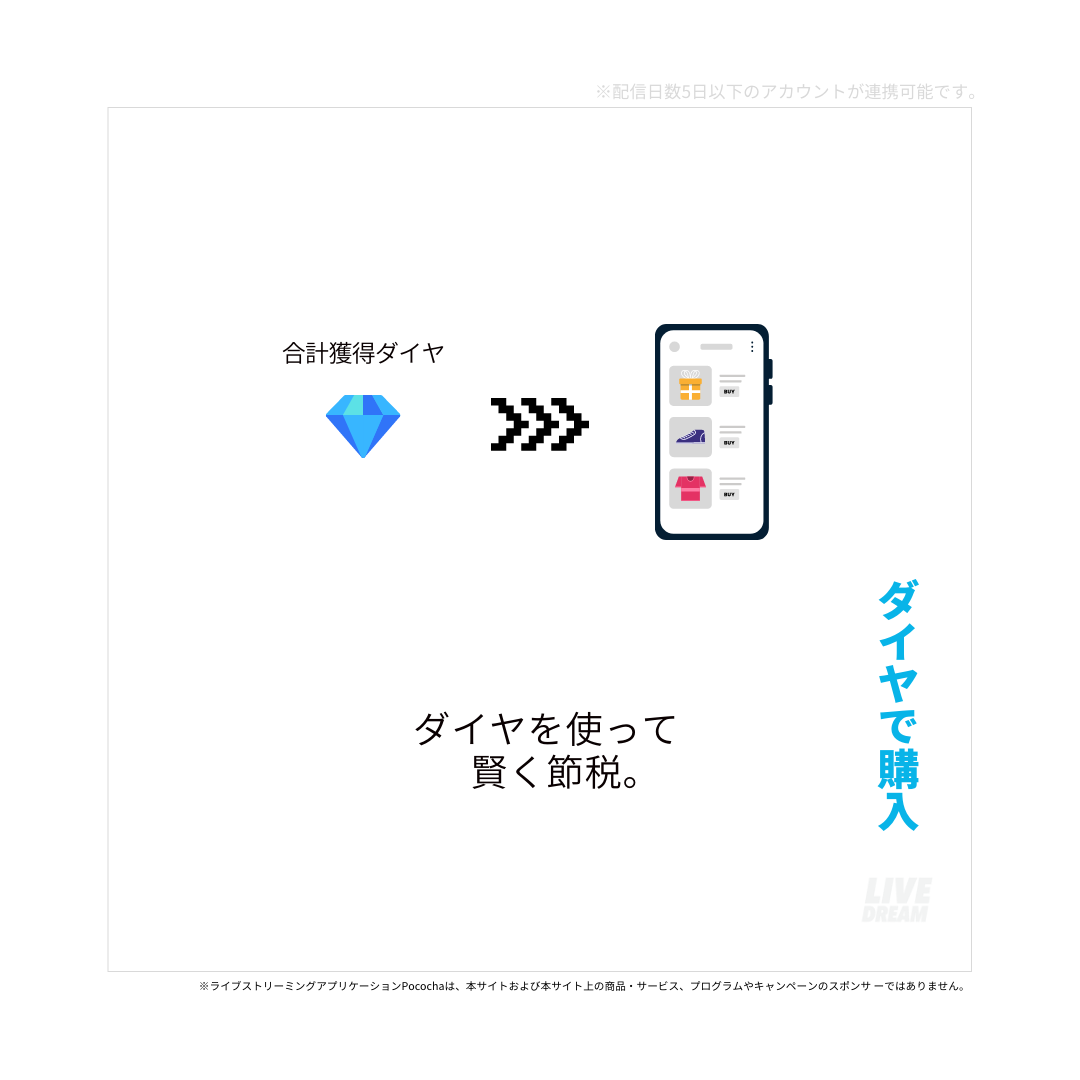ライブドリームが新たに提供するサービス『ダイヤで購入』は、配信者が獲得したアプリ内で得られるデジタルコンテンツ『ダイヤ』を大手通販サイトなどの商品と代理で換金してもらえるサービスであることが明らかになった。