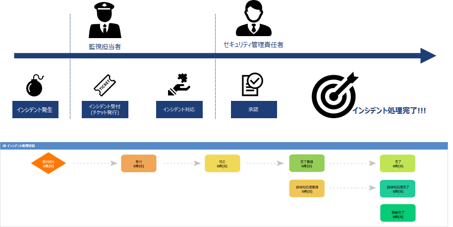 検知した事象はチケットとして管理出来、インシデントがどのような状態にあるか視覚的に確認可能なインシデント管理機能もあり、レポート機能による一定期間の統計情報も簡単に作成できます。「SPiDER TM」でより効率的なセキュリティ監視が実現できます。