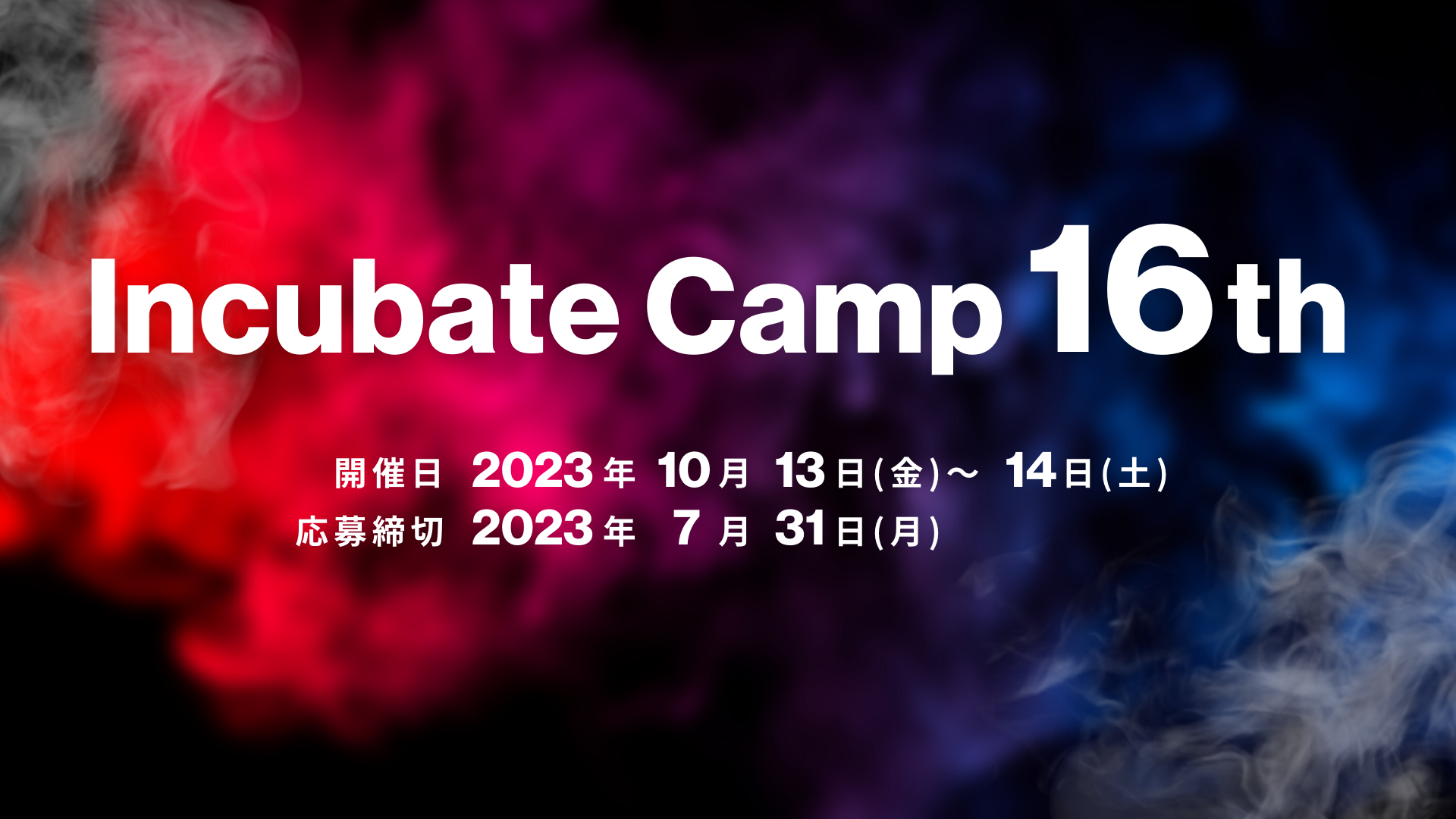10月13日(金)、14日(土):インキュベイトキャンプ16th開催