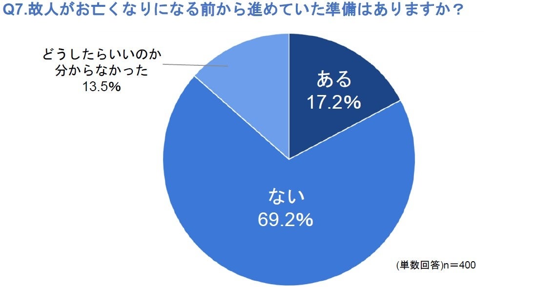 故人が亡くなる前から準備を進めていた方は全体のわずか2割で、8割は「準備をしていない/しようと思っていたが、どうしたらいいのか分からなかった」という結果になりました。その背景には「相談先が分からない」、「親と話しにくい」ことが1つの要因にあると考えられます。
