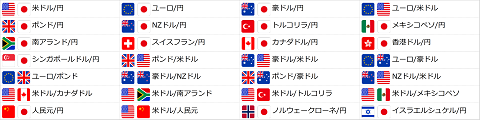 NZドル/円・スイスフラン/円・カナダドル/円・ユーロ/豪ドル・ユーロ/ポンド・豪ドル/NZドル・ポンド/豪ドル・NZドル/米ドルの8通貨ペア