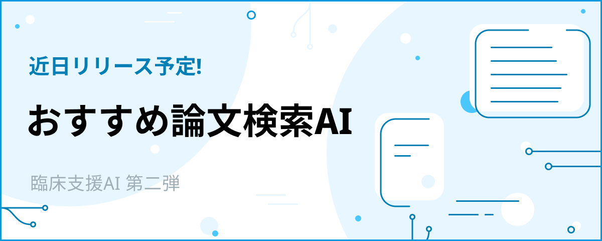 そこで、弊社は医師が効率的かつ正確に医学論文を抽出し、かつ論文要約のAIによる批判的吟味ができる機能を開発しました。近日詳細をリリース予定です。