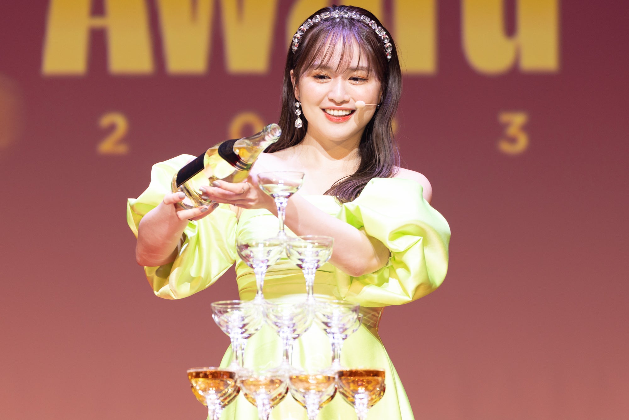 今回のために特別に用意されたシャンパンタワーに、ゆうこすがお酒を注いで華々しく表彰式がスタートしました。