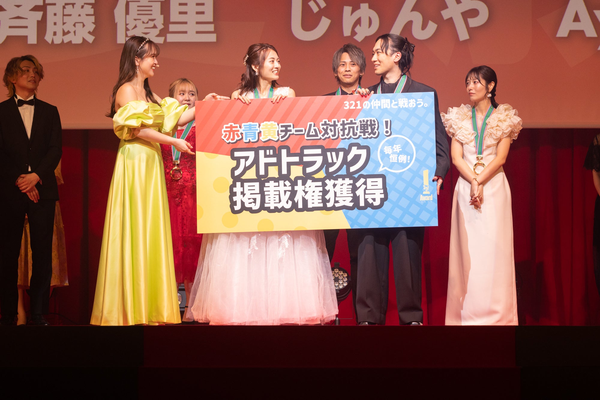 アドトラック掲載権をかけ、総勢約600名が参加した団体戦イベントが2023年3月1日から3月12日まで行われました。赤組、青組、黄色組の各チームの団長・副団長、各チームポイント上位者3名(団長・副団長を除く)の合計15名がステージに登場。