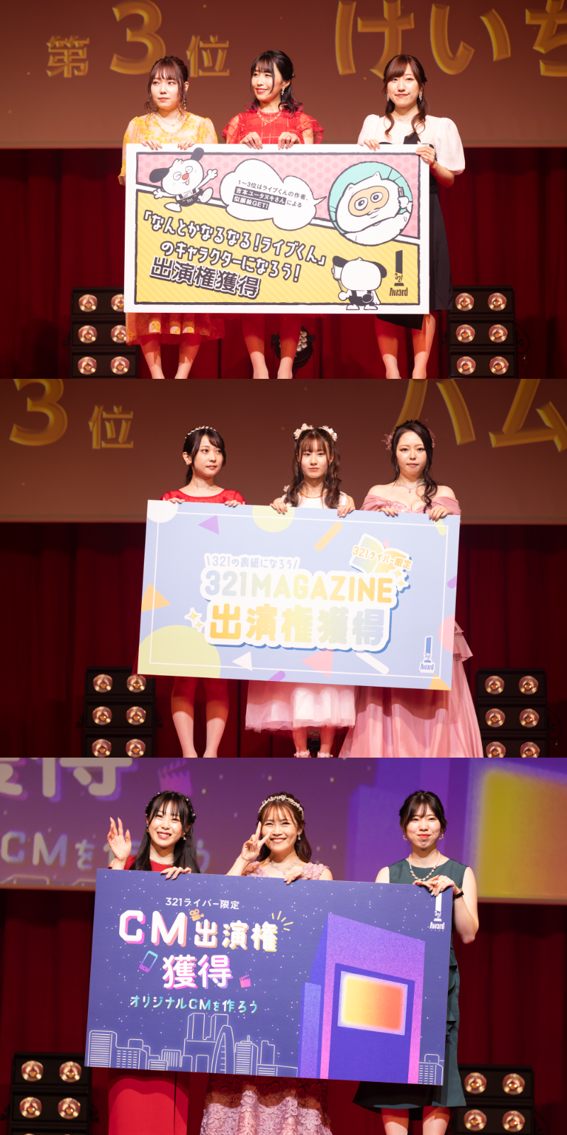 全国の駅などで配布している321MAGAZINEの表紙出演権をかけたイベントで見事入賞した上位3名が登場。